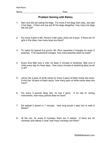 Worksheet Ratios Upper Elem Middle Teaching Resources