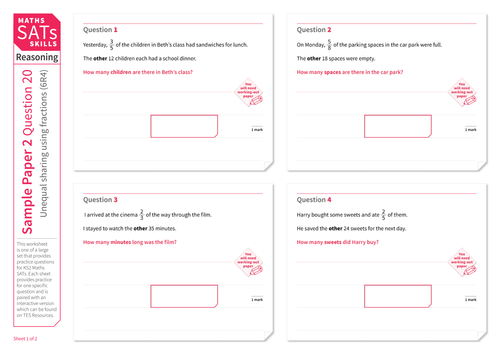 Unequal Sharing Using Fractions Ks2 Maths Sats Reasoning Practice Worksheet Teaching Resources